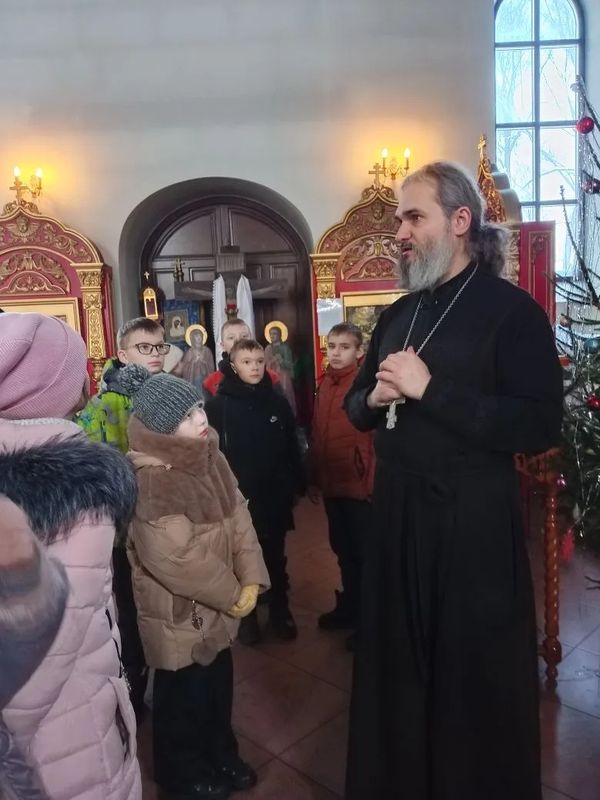 Он провёл для нас беседу, рассказав об устройстве храма, о смысле текущих праздников Рождество Христово, Крещение.