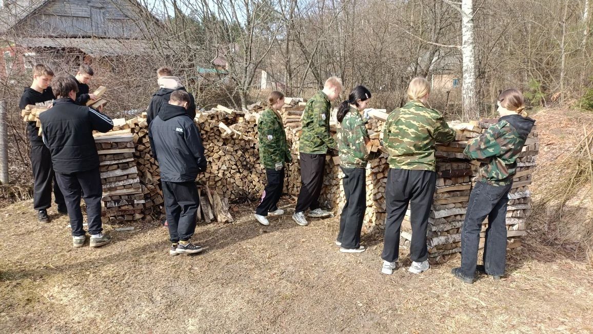 Ребята помогли сложить дрова Галине Тимофеевне Кислицыной — уважаемой пенсионерке нашего посёлка, дочери участницы ВОв и блокадницы Ленинграда.
